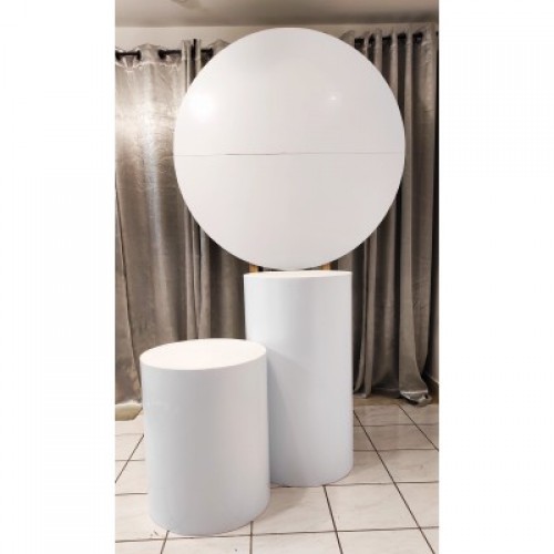 Este paquete esta conformado por 1 cilindro (90cm de alto), 1 cilindro (60cm de alto) y 1 mampara (4 pies de diámetro). Adicionales: Funda para cilindro color mate en $5.00 cada uno, color brillante en $8.00 cada uno. Deposito retornable de $15.00 y Costo de entrega según el área. Rotulación o decoración completa contactarnos para cotizar. Atención: Separar con 10 días de anticipación y se solicita abono del 50%. Si anula la reserva tiene recargo del 20%. Encuentre la mayor variedad de decoración de eventos y alquiler de mobiliarios como sillas y mesas en panamá. alquiler de mobiliario, sillas, mesas y muebles lounge para eventos. Decoraciones de todo tipo de eventos.